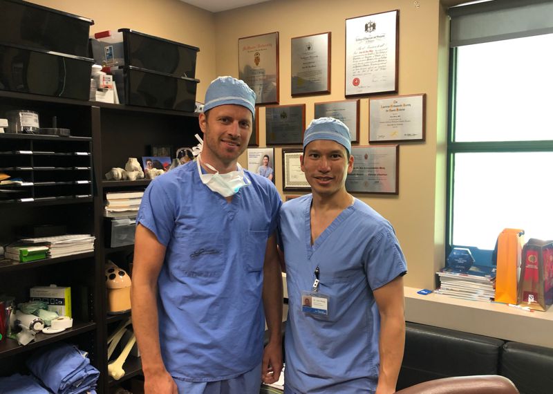Z naslednjim letalom sem poletel v Novo Scotio, mesto Halifax, ki leži na obeli Atlantskega oceana. Ker sem prispel v nedeljo zjutraj, me je prijazno pričakala skupina treh mladih ortopedov, ki so bili »zadolženi«, da mi razkažejo mesto, peljejo na kosilo in z ladjo na ogled kitov. Edinstvena izkušnja, pa čeprav smo videli zgolj enega. Je pa bilo veliko časa za sproščen pogovor z imenitnimi pogledi na številne svetilnike, atlantsko obalo in vile, ki se nizajo ob njej. Zanimivo je bilo slišati o življenjskem slogu ortopedskega specializanta v Kanadi, kako negotova je njihova prihodnost, saj skoraj nihče ne ostane v ustanovi, kjer se je izobraževal, koliko ur tedensko preživijo v službi in kako relativno nizke so navsezadnje njihove plače. Eden izmed njih me je naslednje jutro pričakal pred hotelom in me pospremil do bolnišnice oz. kar direktno v operacijsko dvorano kanadskega ramenskega superstara, Iwana Wonga. Sam sem ga v svojih mislih poimenoval kar artroskopski Bruce Lee – malo zaradi fenotipske podobnosti, predvsem pa zaradi izjemne prefinjenosti pri artroskopski rekonstrukciji superiorne kapsule ramenskega sklepa. Ob uporabi sedmih sider in enaindvajset niti, so le-te kar švigale in drvele po različnih portalih, da sem komajda sledil, kaj se dogaja, sam patch pa se je na koncu šolsko postavil na svoje mesto. Gre za enega izmed glavnih ramenskih artroskopistov v državi, kar se je izkazalo tudi na kadaverskem tečaju nekaj dni kasneje v Monteralu, saj je po mojem mnenju njegova tehnika tega posega v primerjavi z tehnikami ostalih mentorjev bistveno enostavnejša, hitrejša in zmanjšuje možnost zapletov – vozlanja preštevilnih niti.